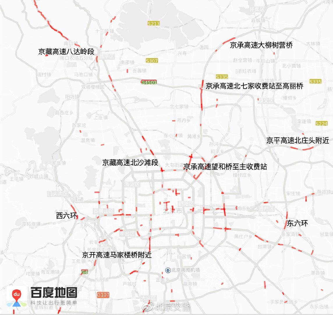 4月7日返程期间,预计京港澳高速、京承高速、大广高速、京藏高速等也将出现车流集中的情况。