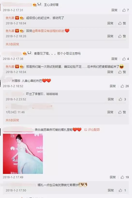 大量被偷拍的明星没有采取法律手段的原因,也许还因为这些“品德测试”视频对很多明星的形象起到了良好的正面宣传。如遇到残疾人摔倒第一反应就是上千扶的迪丽热巴、王心凌,如看到路人钱包掉落立马追上去归还的王俊凯、王源等等,鱼丸姜也会在评论区积极地和表白偶像的粉丝们互动。