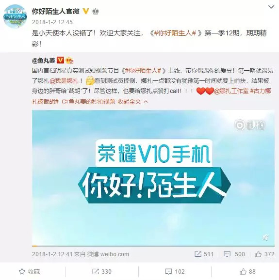 《你好!陌生人》第一季曾被华为荣耀V10赞助