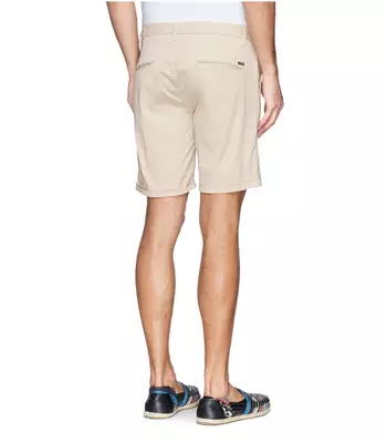 奇诺短裤也就是卡其短裤,其材质为斜纹的棉织物,颜色多为卡其色。这款短裤源于19世纪的美西战争,黄褐色可以很好的掩护身处大草原和沙漠中的战士。而现在,卡其短裤已经不再局限于黄褐色了,从更加正式的深色,到鲜艳明亮的浅色,带给人休闲、灵活的感觉,在日常生活中变得非常百搭。