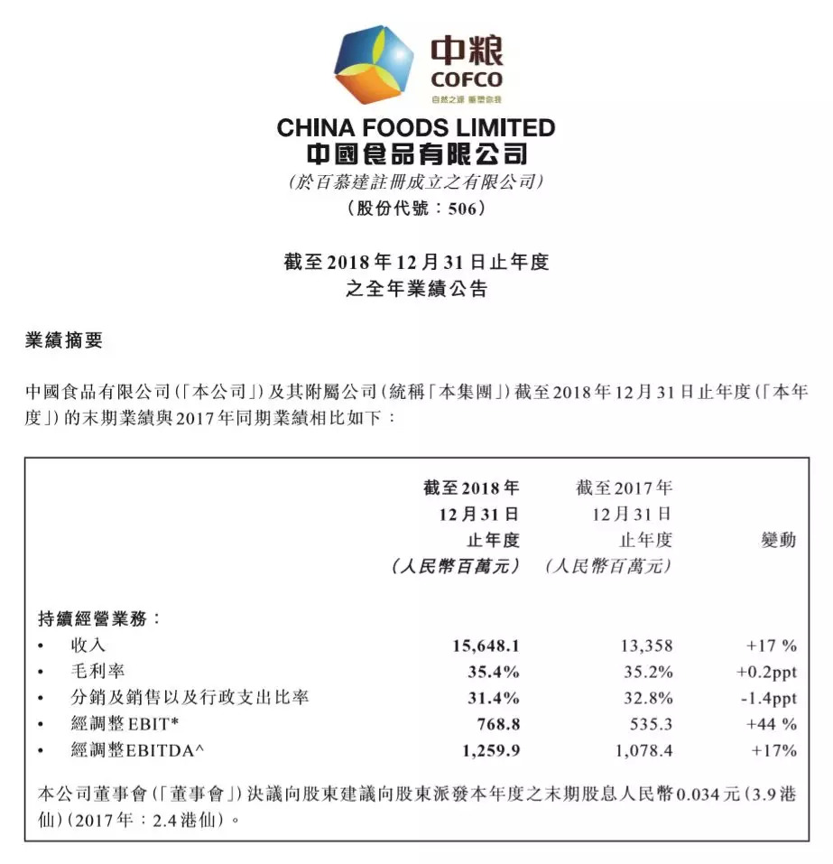 另一个值得注意的地方是,去年是中国食品在可口可乐中国区业务重组完成后,第一个完整的运营年度。