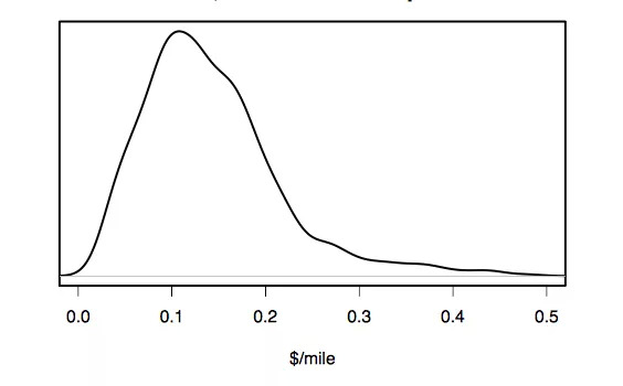 如果按照每英里这样计算收入的话,这些共享行业司机们的收入中位数为0.59美元/英里,但扣除车辆实际需要的运营费用,这将让驾驶员的实际利润降低至0.29美元/英里的中位数。