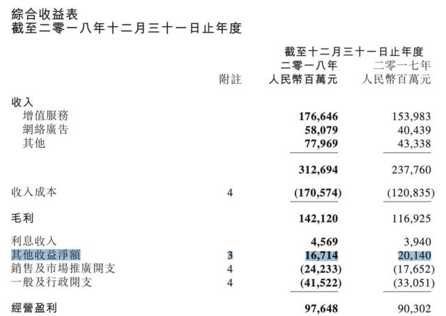 腾讯财报中的“其他收益净额”