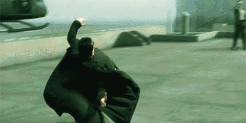 后来John Gaeta曾笑称:“在当时技术环境下,我们确实需要一个排练过程,不过我们原计划的场景是一个样子,拍出来的结果却是另一个样子。”这些酷炫的闪避动作,也不只是单纯的炫技,它们与尼奥的成长息息相关,暗示着他对矩阵世界的察觉进入到新的境界。