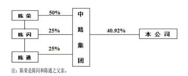 至今,上海中路集团控股中路股份40.92%,是上海中路第一大股东。而关于上海中路集团,陈荣和两个儿子陈通、陈闪分别占股50%、25%、25%。