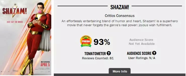 最近,媒体口碑也已经解禁,烂番茄新鲜度93%,超越了《海王》在上映前的新鲜度。