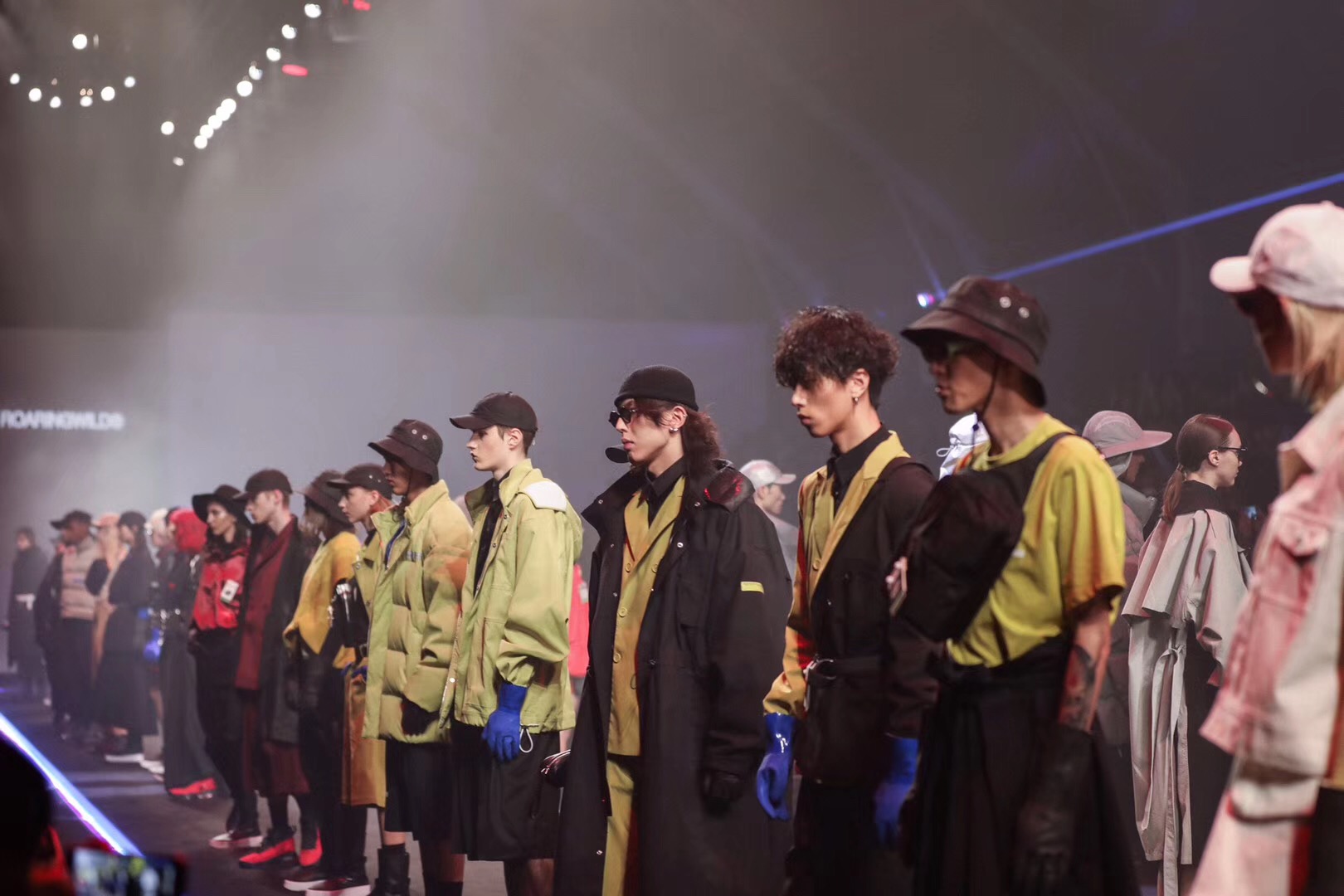 深圳潮流品牌ROARINGWILD本季以 “Urban Hotbox”为秀场主题,以期展示一个扭曲及夸张的城市新型态。亮色系西装、强廓形感军事外套、反光羽绒服、伞兵包等单品在怪诞迷幻的激光影响映射下视觉体验更为强烈。