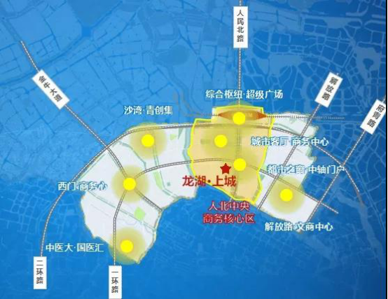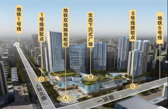 人北中央商务区作为成都发展早、区位优、集约度高、基础设施完备的中心商务商贸区,其功能形象定位为——“综合枢纽超级广场、城市客厅商务中心、都市之窗中轴门户”。