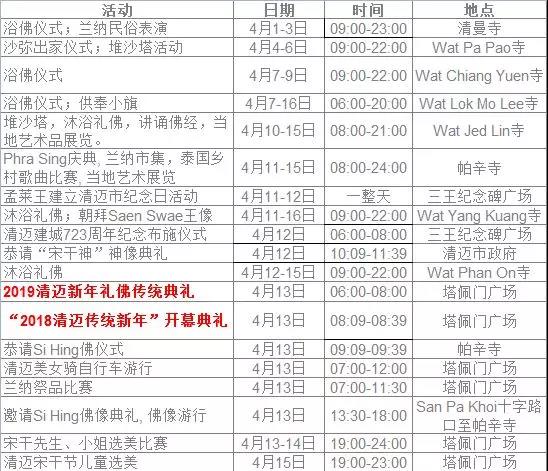2019年清迈泼水节活动安排
