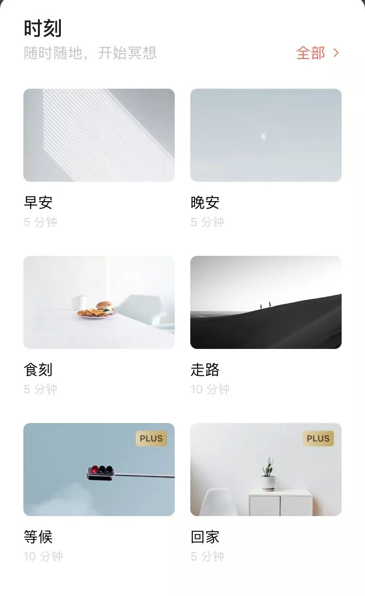 不同场景下,潮汐设定了不同的冥想练习内容