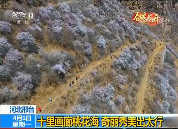 春光明媚,景区里海拔1200多米巍峨雄壮的明代长城“冀道岭关”,在娇艳桃花的点缀下也多了几分柔情。