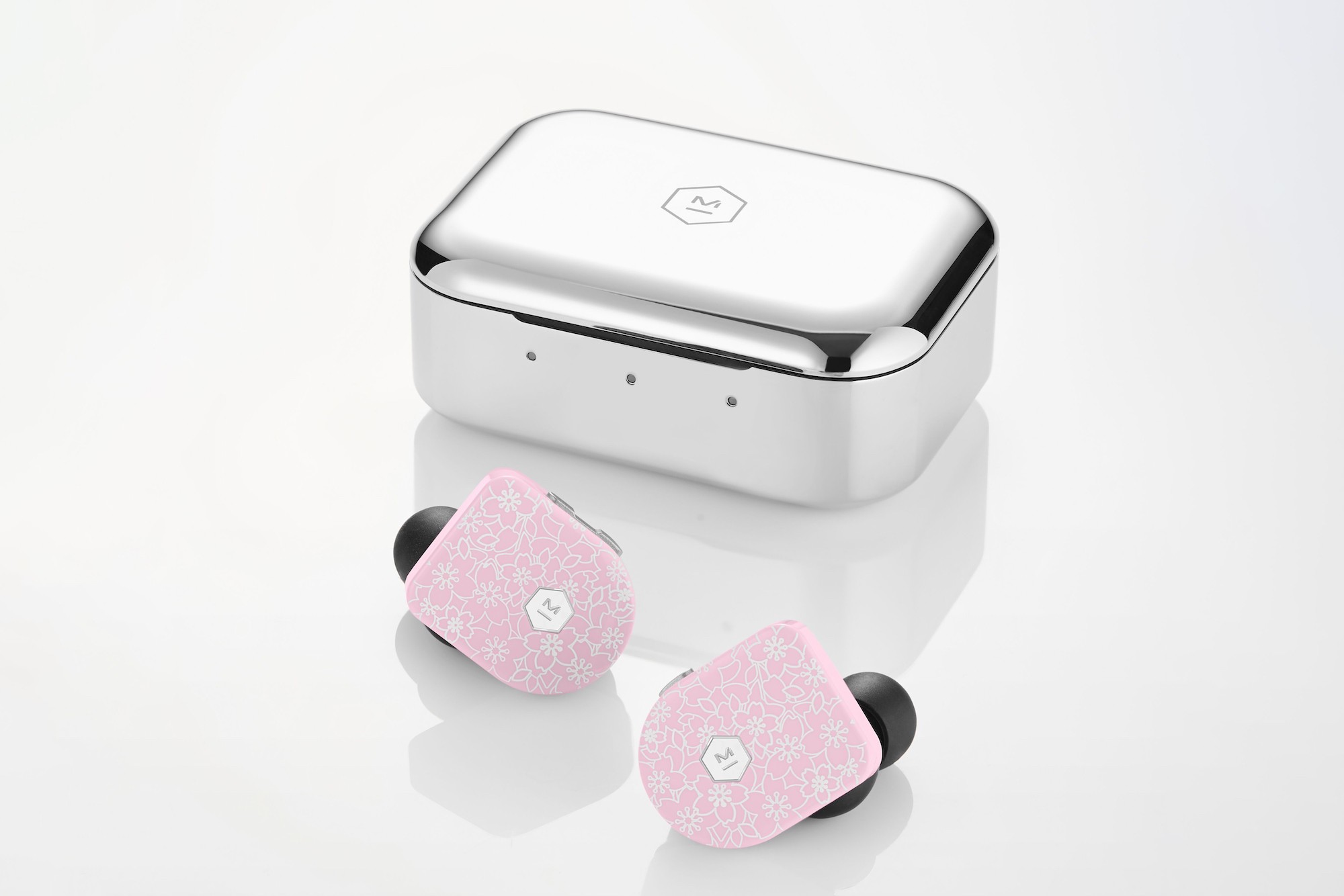 这款名为MW07的无线耳机是Master&Dynamic真正意义上的第一款无线耳塞式产品,其灵感来源于日本每年春天的传统赏樱季。粉色的樱花在白色线条的勾勒下层层叠叠地绽放于耳机外壳之上,独特的设计触感更增强了其中“赏樱”的乐趣。