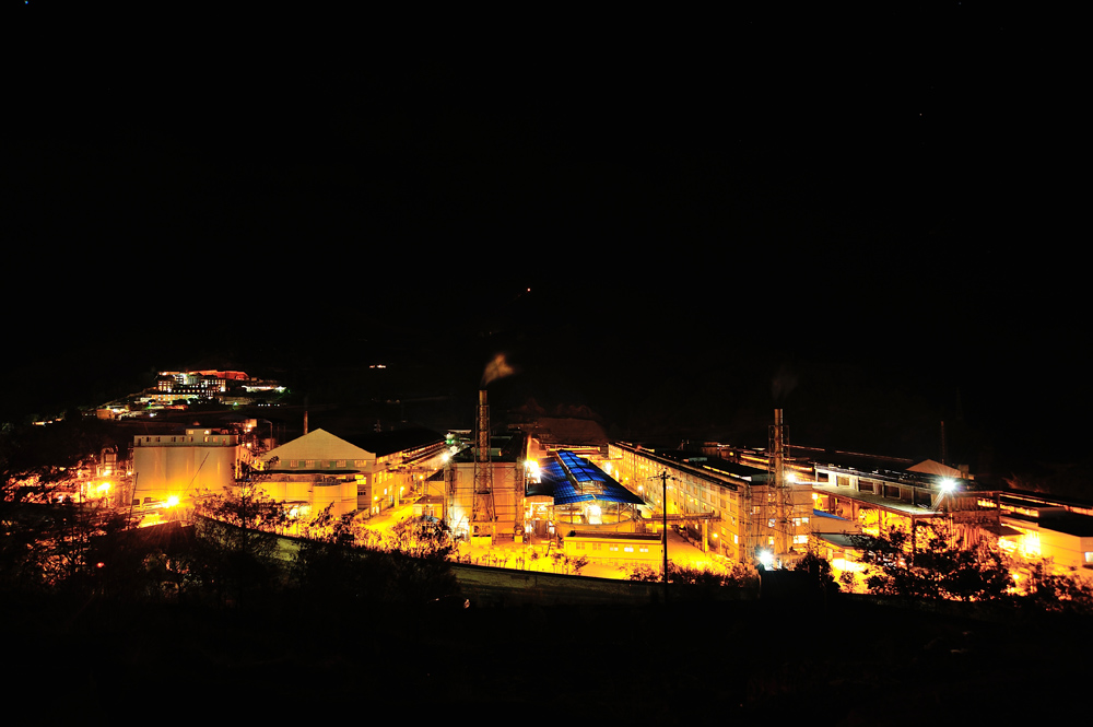 金鼎锌业冶炼厂的大烟囱在夜里不定时排放烟气,在工厂两侧的村民只能期盼风把烟尘吹往另一边。@Greenpeace/林克