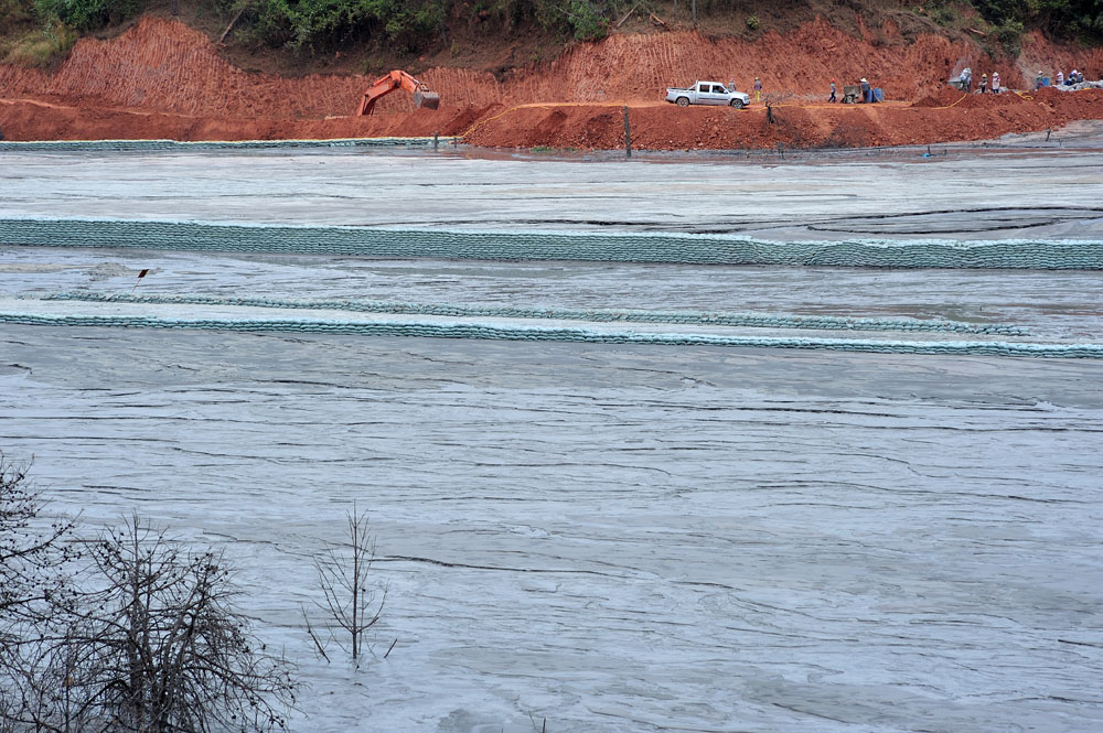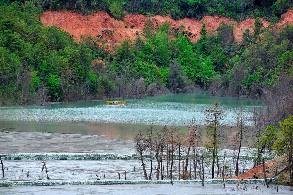 哨上尾矿库用于弃置高毒性的选矿废渣,其岸边正在进行扩建工程。@Greenpeace/林克
