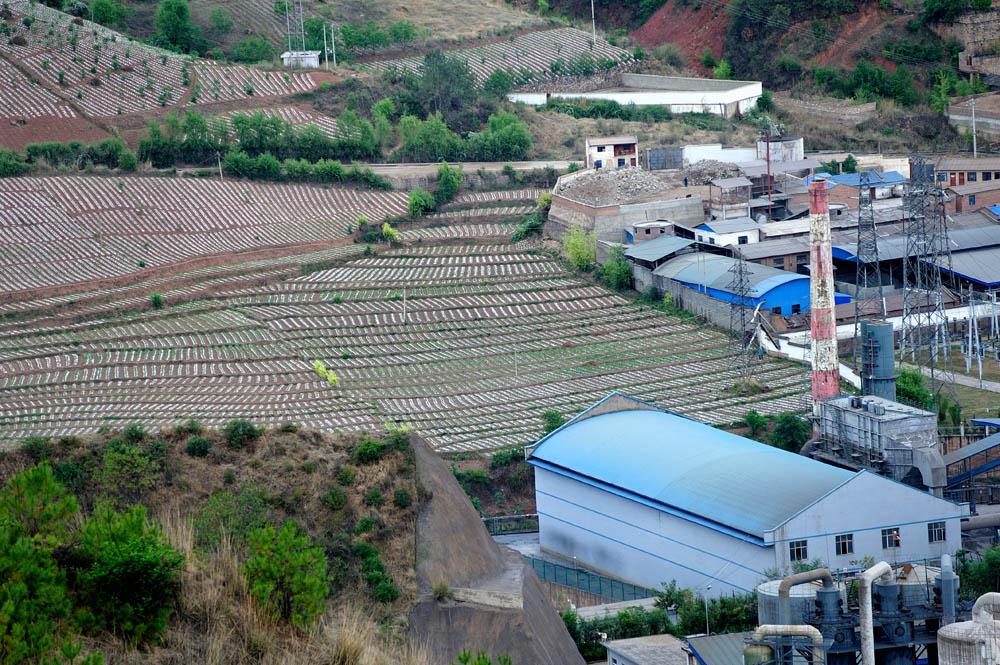 与农田毗邻的矿厂。冶炼厂的卫生防护距离一般应为至少600米,但西南方向的麦杆甸村距离铅锌冶炼厂却不到100米。冶炼厂东北方向的香柏村约500米,土壤以及家居灰尘的重金属仍超标严重。@Greenpeace/林克