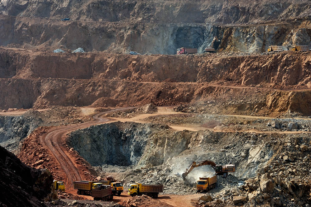 矿山中的采矿车一周七天不停工作。每天早上6时、下午6时是炸山时间,在2公里外的县城都可以听到隆隆爆炸声。@Greenpeace/林克