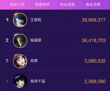 2017年百度沸点人气榜张国荣排名第二