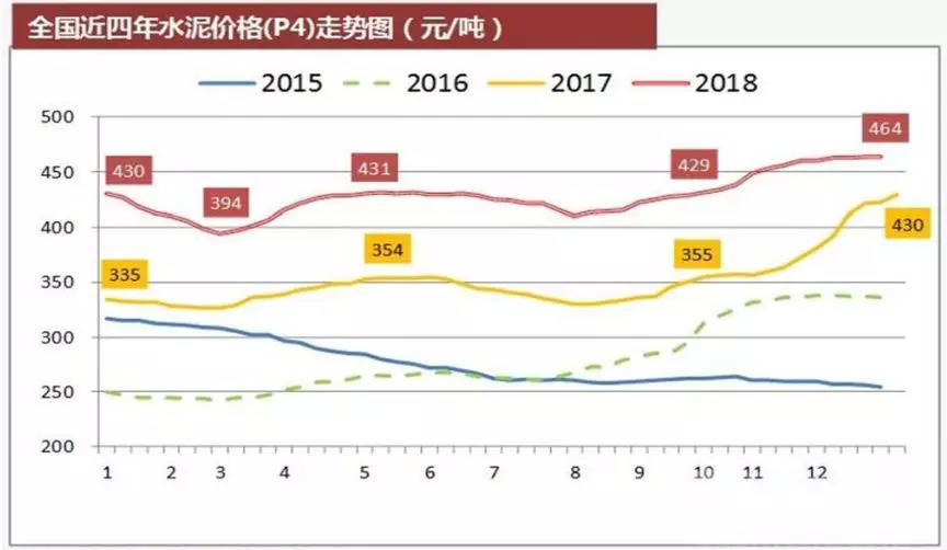 过去三年受供给侧改革影响,水泥价格大幅上涨,攀升了到历史以来的最高水平。以下为公司公告披露的全国近年水泥价格(P4)走势如下图: