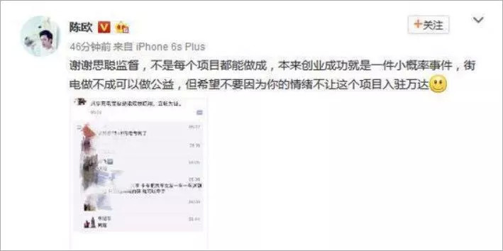 3小时后,陈欧在微博上公开回应,“本来创业就是一个小概率事件,希望不要因为你的情绪不让项目入驻万达。”经过这一轮推波助澜,共享充电宝走上风口浪尖。