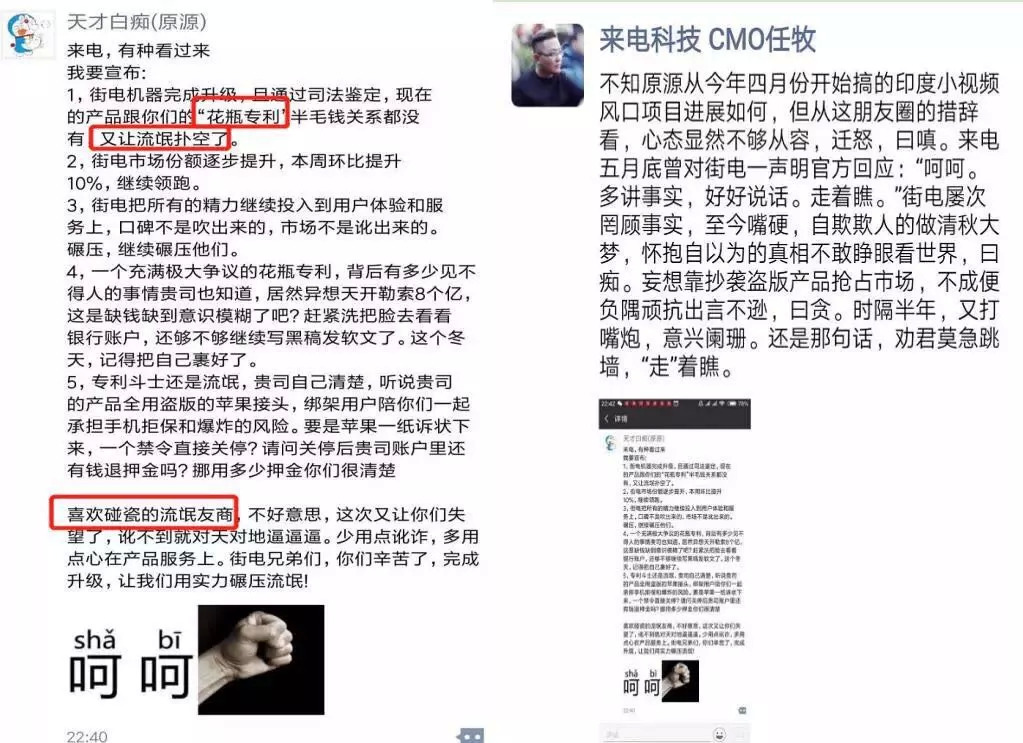 街电CEO原源与来电CMO任牧朋友圈互呛