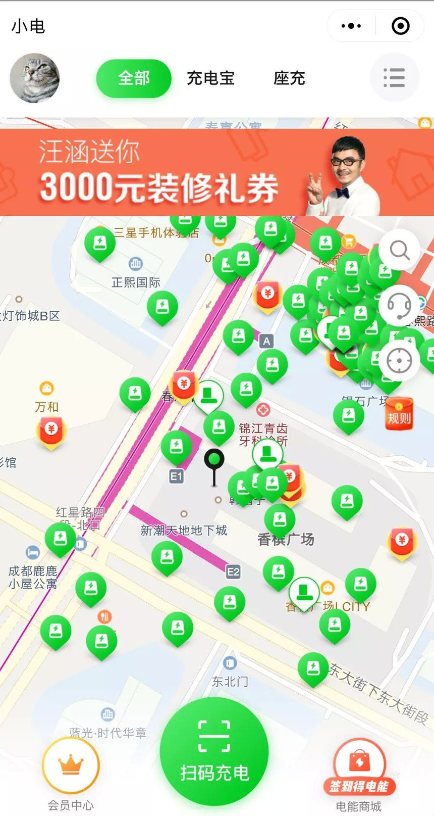 小电位于成都春熙路步行街的点位分布,受访者供图