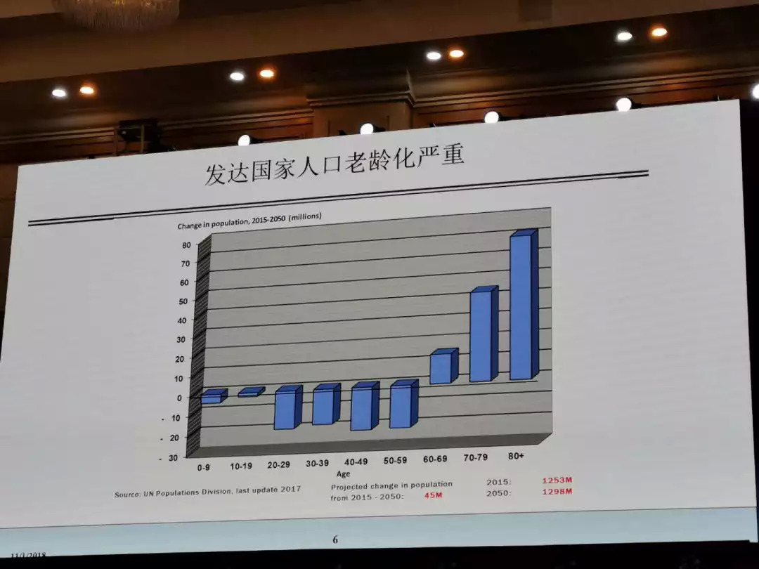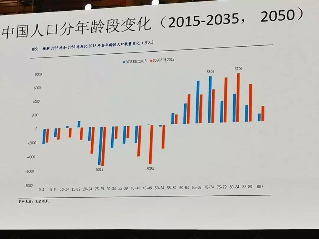 老龄化改变了需求结构、改变了供给结构、改变了政府政策。中国也不容易,2050年和今天比,中国净增长的人口都在60岁年龄段、70岁年龄段和80岁年龄段,中国跌得最厉害的是20岁年龄段的青壮年和40岁年龄段最有经验的中层干部,所以中国老龄化也是很厉害的。