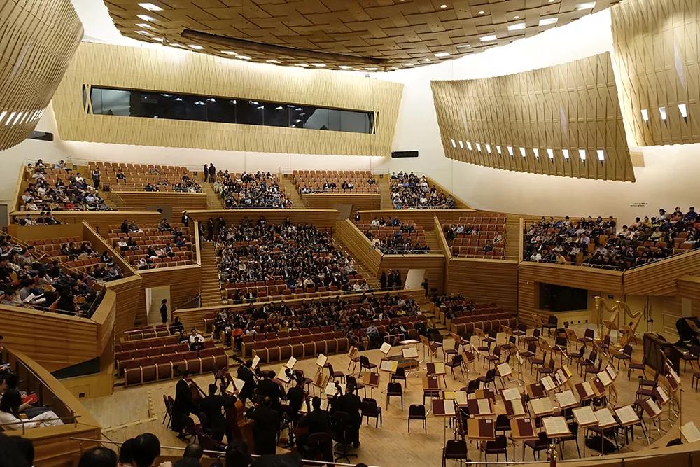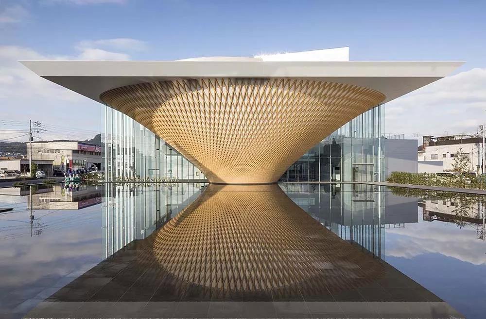 在日本他设计了奈良百年会馆,就在JR奈良站背向景点的方向,看鹿的空闲时间可以走过去瞧瞧,你能看见类似于中央美院美术馆的外表原型和上海音乐厅内部一样的木片编织装饰,开动脑筋,搞清楚顶部巨大的编织物是怎么弄成的有点头疼。