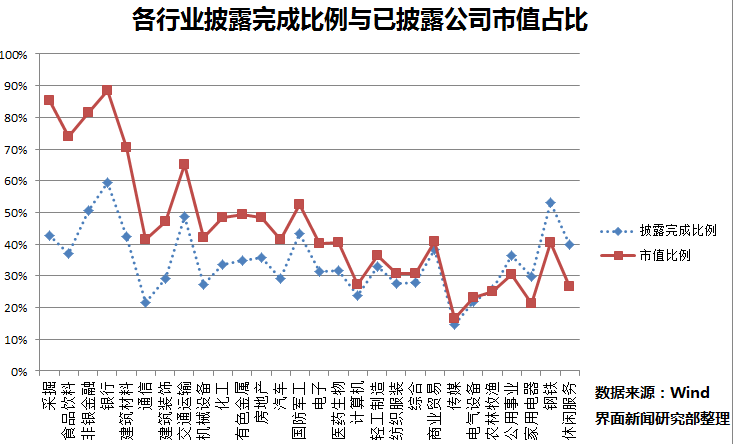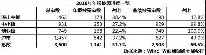 从板块上看,沪市完成披露542家,深市主板178家,中小板253家,创业板168家,各版块披露完成比例均在20%至40%之间。
