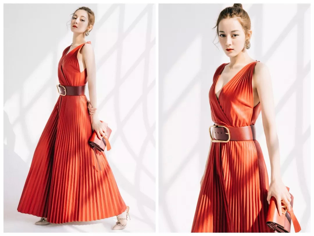 类似的,热巴还穿着红色皮裙拍了《VOGUE me》大片。同样是Valentino,却是另一种性感的味道。