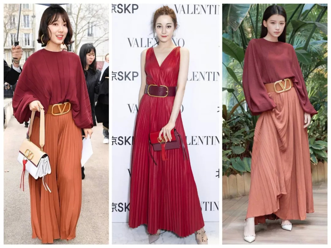 原本Valentino都是仙仙的、温柔的样子。加上一条皮带后,立马变得大气、硬朗、摩登起来。
