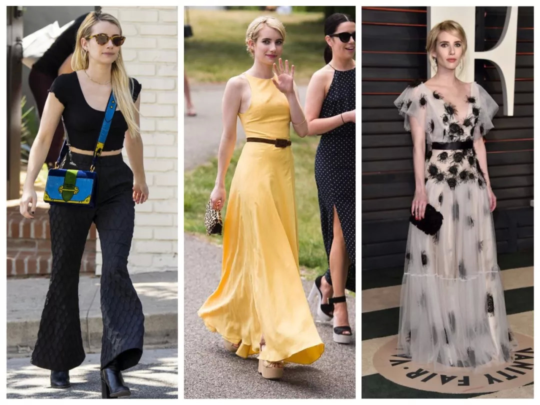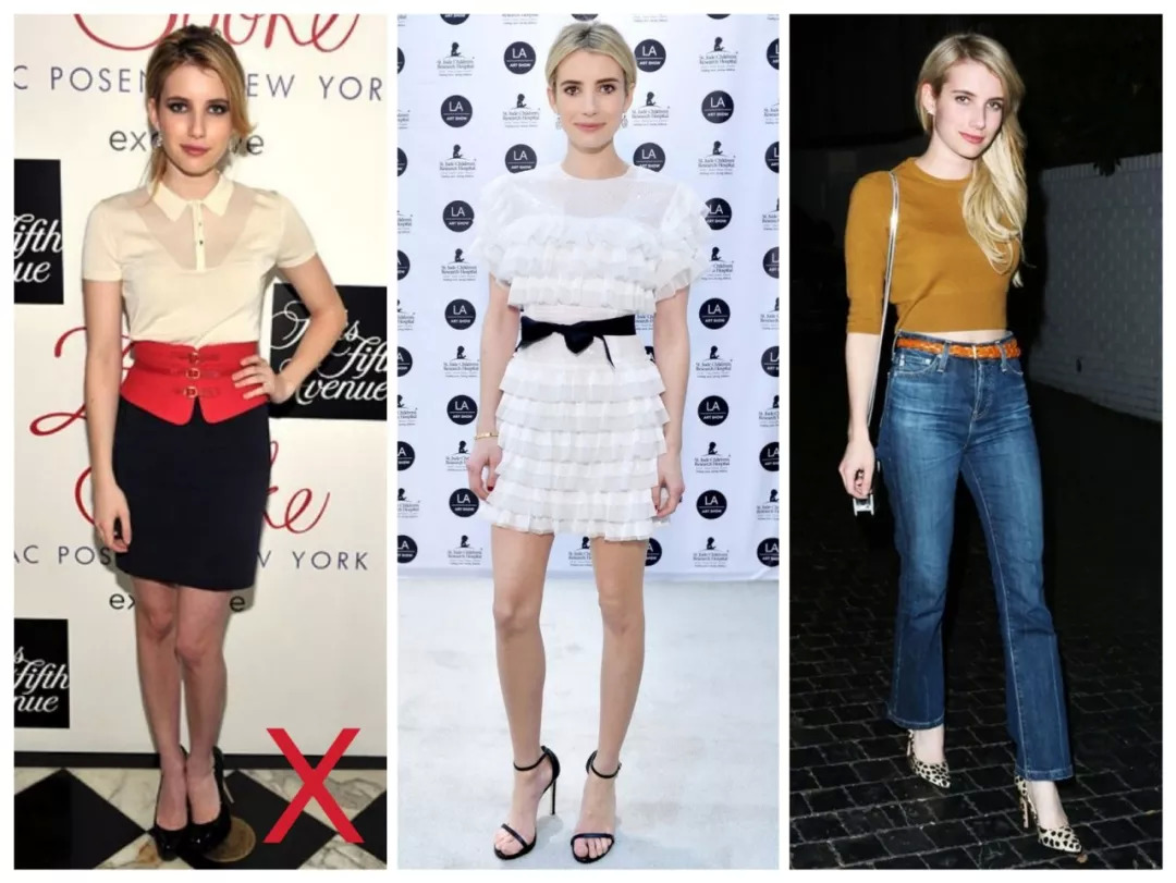 例子依旧是Emma Roberts。扎宽腰带的她,整个人看起来腰长腿短,不够轻盈。