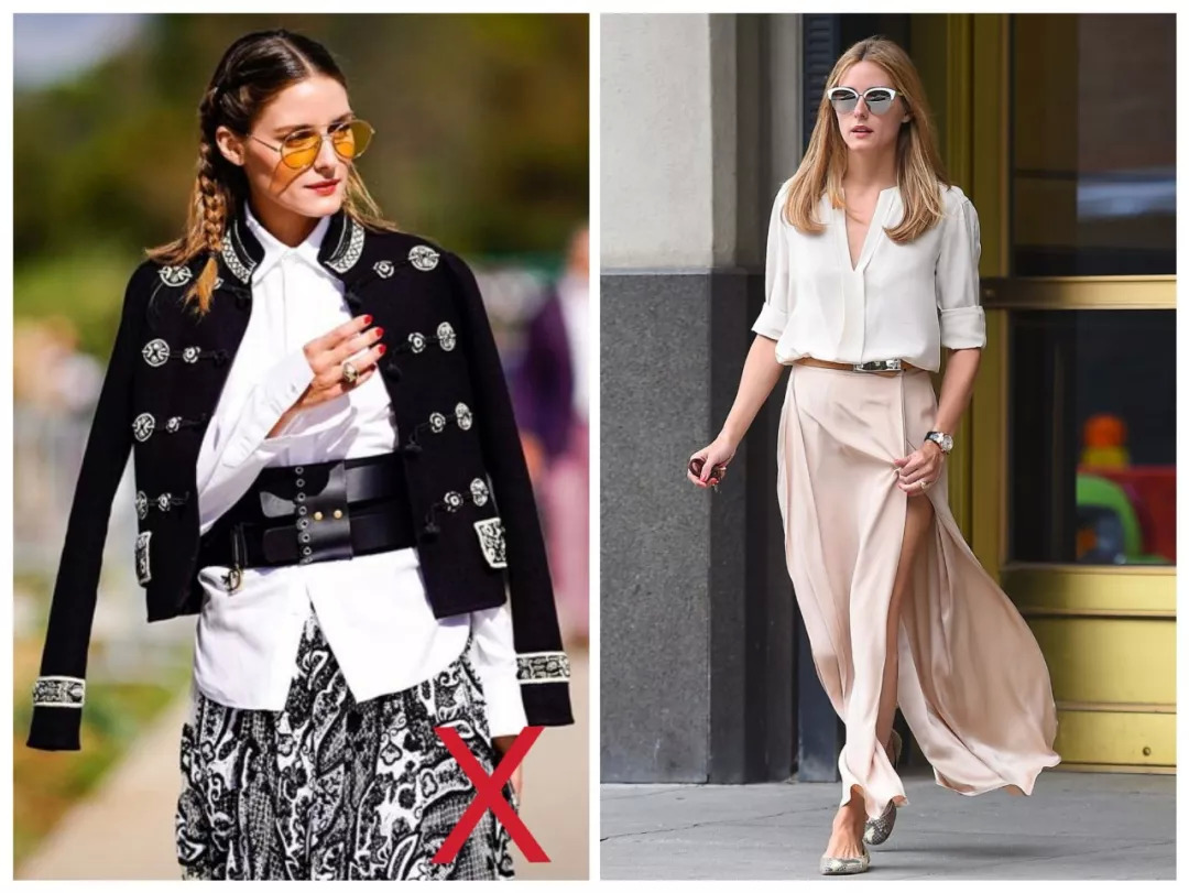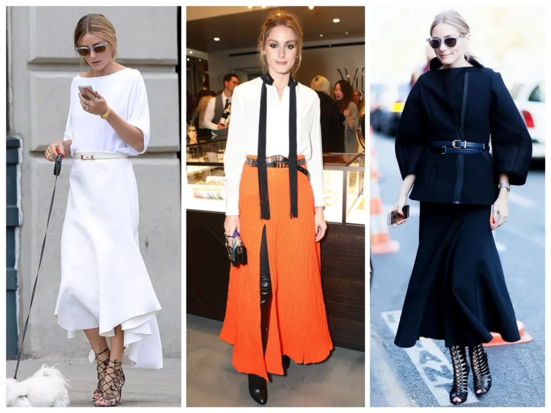 比如,平板星人代表——OliviaPalermo。没腰,没曲线。所以,一般她都会利用腰带突出线条,增加女人味。