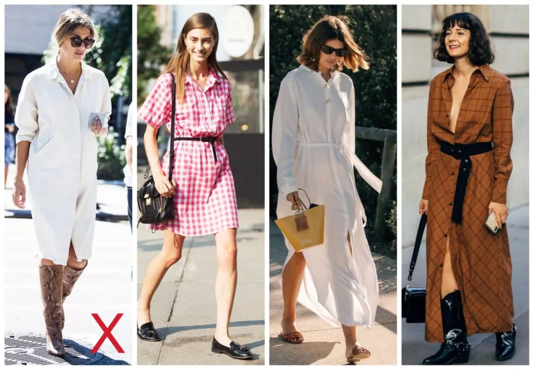 最典型的就是衬衫裙。不加腰带单穿,特别像睡衣。邋邋遢遢,很不得体。对比加腰带后,是不是精神多了?