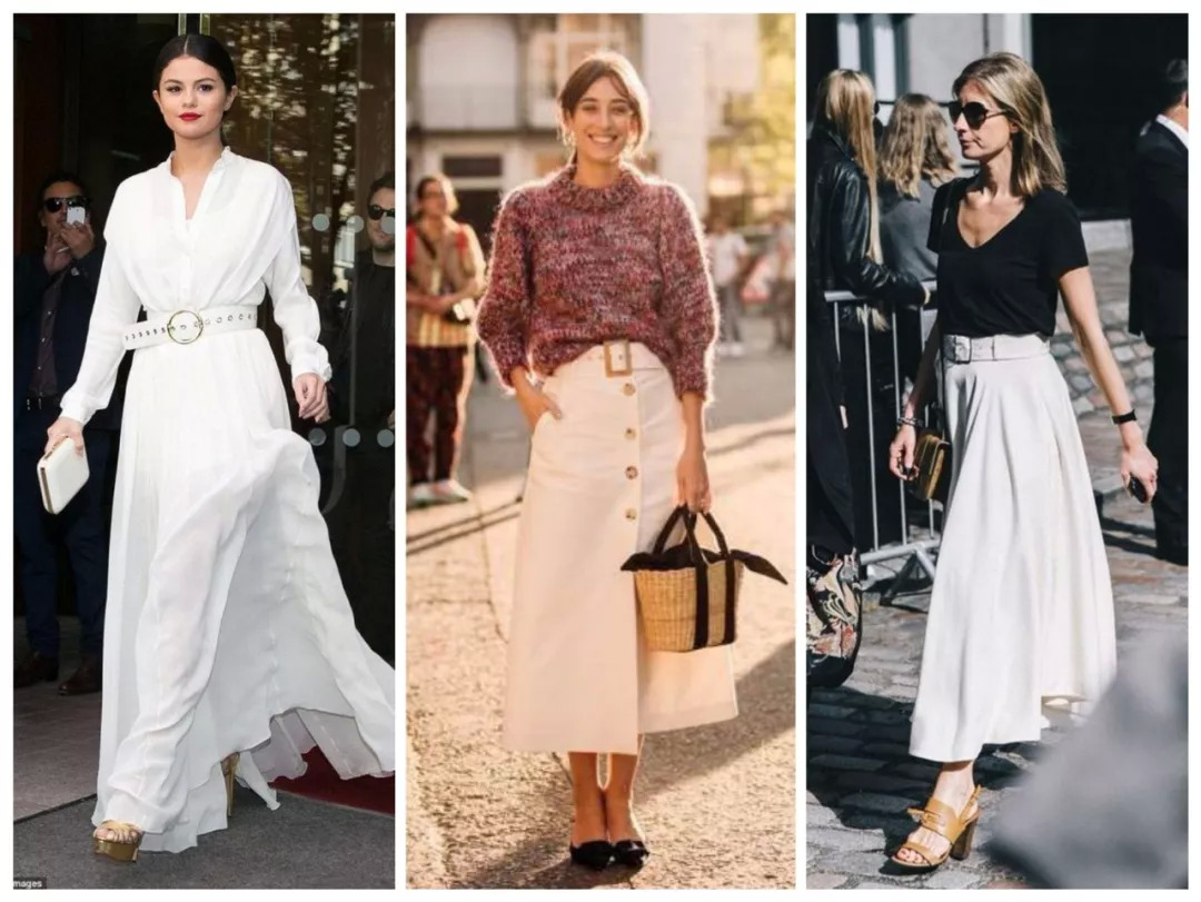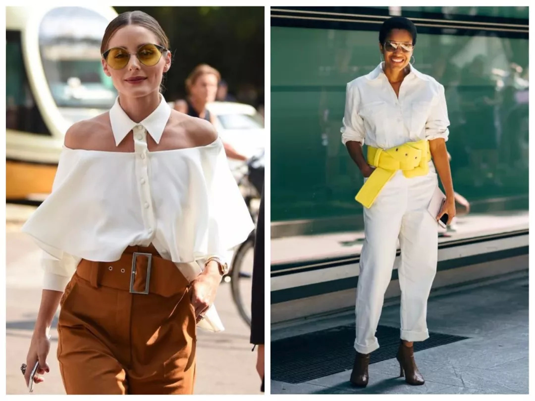 白色腰带相对少见一些。大多数人,都喜欢用它配小白裙,打造顺色look。
