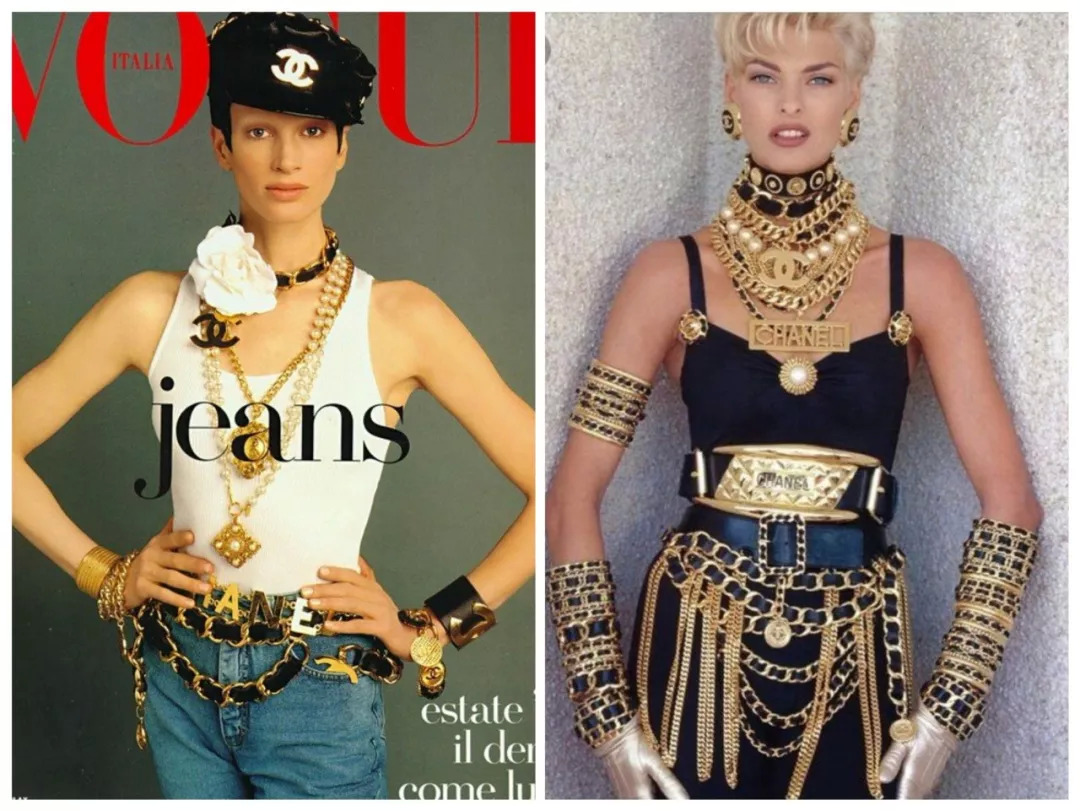 其实,这股风潮原本是CHANEL带起来的。老佛爷从包包上汲取灵感,设计出了这种皮穿链的腰带,在上世纪末风靡时尚圈。