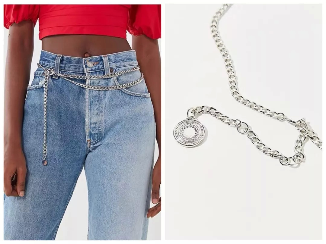 不过,CHANEL腰链就算是古着也有点贵,不妨试试Urban Outfitters这两条,有金色,有银色,设计简单也更百搭一些。