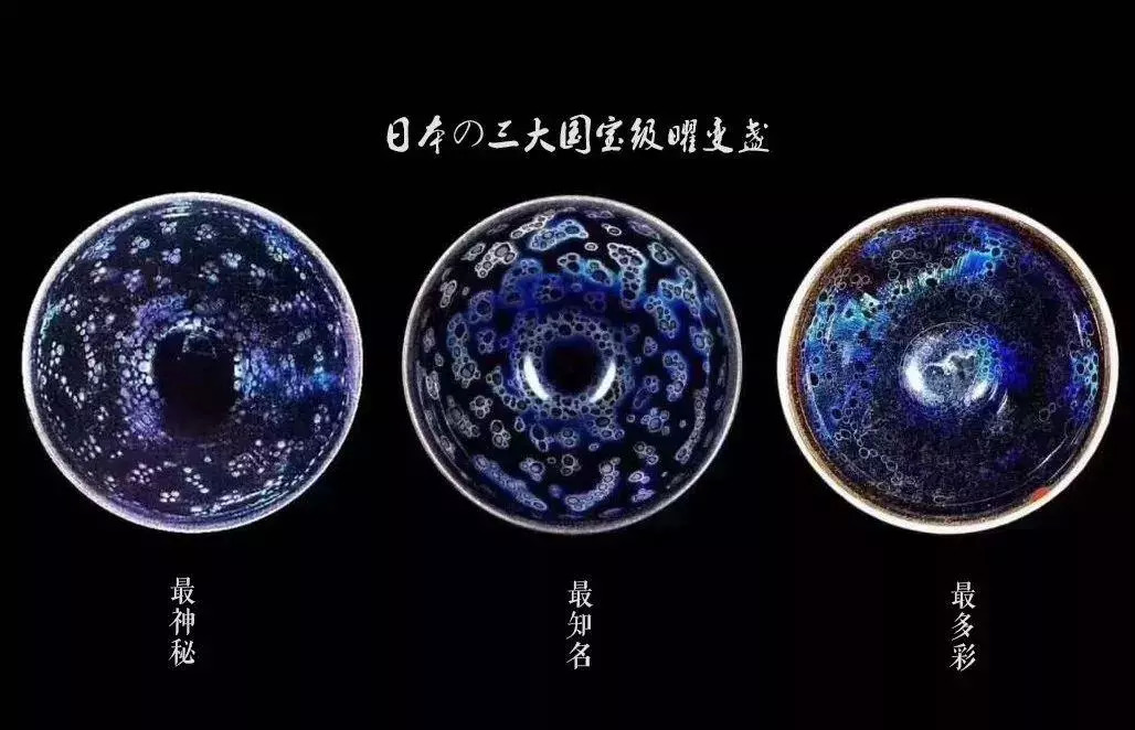 曜变建盏的烧成带有极大的偶然性,有「一碗烧成万碗残」之说,这种超高难度的烧制技艺已失传近800年。建盏在日本是被称作天目盏,宋朝时期日本僧人归国时带走的黑釉茶碗大多源自浙江天目山寺院,天目盏由此得名。而公认的三件完好的传世「曜变天目三绝盏」,均藏于日本。