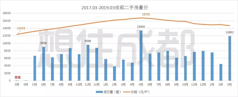 图:近两年成都二手房量价数据走势 统计来源:成都市房管局