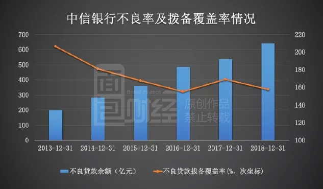 但与此同时,截至2018年底,中信银行的拨备覆盖率较上年末下降了11.46个百分点。