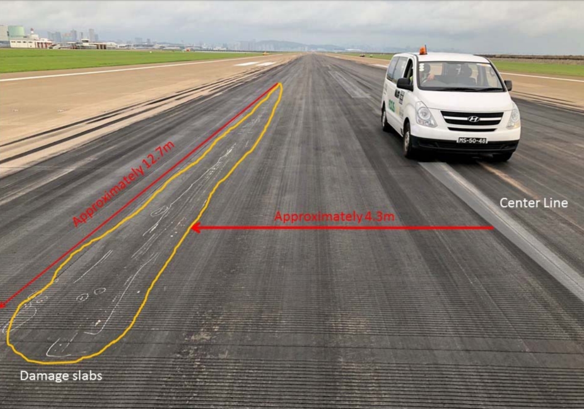 飞机降落时,飞行员意识到前起落架的轮子已经不在了,所以尽可能长时间地让机头保持上扬。不过最终,飞机还是在深圳机场的跑道上留下了一道395米长的印记,3个跑道指示灯也被撞坏;同时,在澳门机场的跑道上也留下了12.7米的摩擦痕迹。