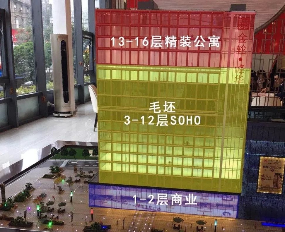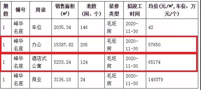 项目3-12层是办公用房,也就是SOHO,共205套,毛坯销许价57650元/㎡,上面13-16层为酒店式公寓,共124套,毛坯销许价65174元/㎡。