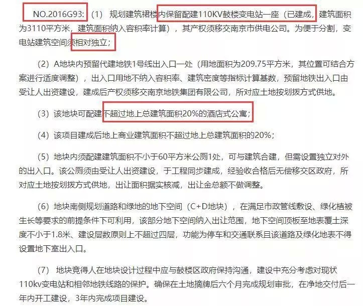 不过根据当时的出让公告,G93地块在备注里明确提及,规划建筑群内需保留配建110KV鼓楼变电站一座(已建成,建筑面积为3110㎡),建设中也要充分考虑对现状110kv变电站和相邻地铁线路的保护。