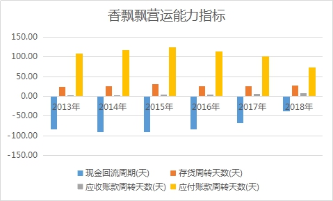 整体来看,香飘飘目前整体的营运能力表现的很好,由于其具有超长的付款周期,使得其现金回流周期为负数。所谓的现金回流周期便是从企业花钱购进原材料生产,到销售出去收回现金需要的时间。这个值为负,则说明香飘飘生产奶茶根本就不用花自己账上的现金。
