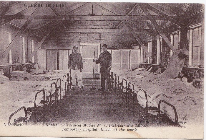野战医院的病床上伤患遍布,他们看起来既怪异又可怜。有士兵因为气性坏疽垂死挣扎,还有人得了梅毒,其中一位病人止不住地哭泣,因为他不想死。一个10岁的比利时男孩腹部受到德军炮弹碎片的致命一击,他对着妈妈大声痛哭。