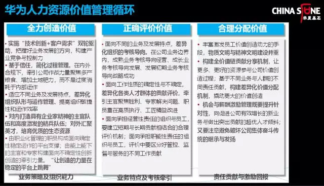 后来这些原则就写进了《基本法》:华为的人力资源管理要建立价值管理的三个循环——价值创造、价值评价、价值分配。