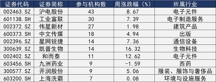 星石投资则调研了沪电股份(002463.SZ)。值得一提的是,沪电股份本周的调研会议共计吸引了43家机构的参与,成为本周最受机构关注的A股公司。而这家印制电路板行业的头部公司,近期股价接近历史新高。