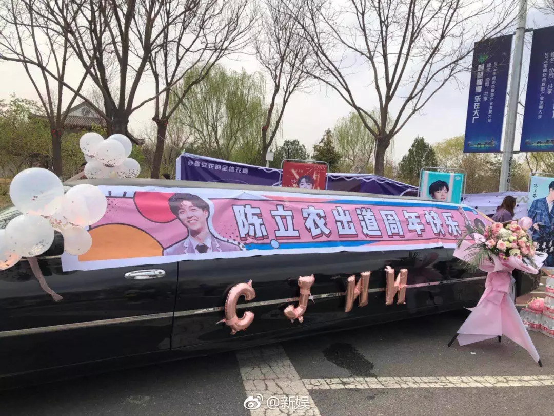 大厂门外,ninepercent九站联合列队出街,团站带队高喊团体及蔡徐坤口号,其他8位成员粉丝站有序跟上。口号声配合着主题曲《eiei》此起披伏,陈立农、黄明昊、范丞丞等人的应援车、易拉宝、条幅霸占一整条街。