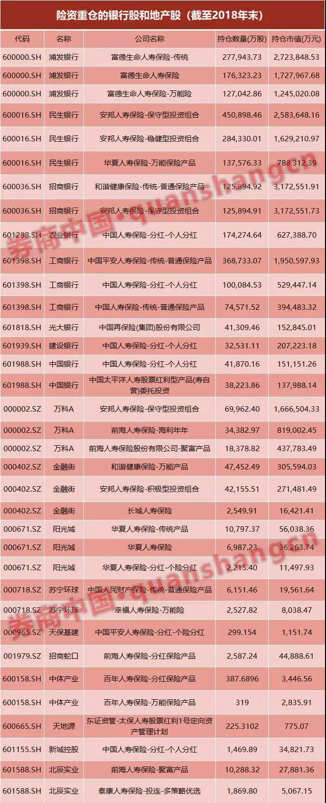 银行股是保险资金最青睐的投资标的。截至2018年末,保险资金持有的银行股共计257.75亿股,持仓市值达2119.42亿元,占目前保险持仓总市值的69%。