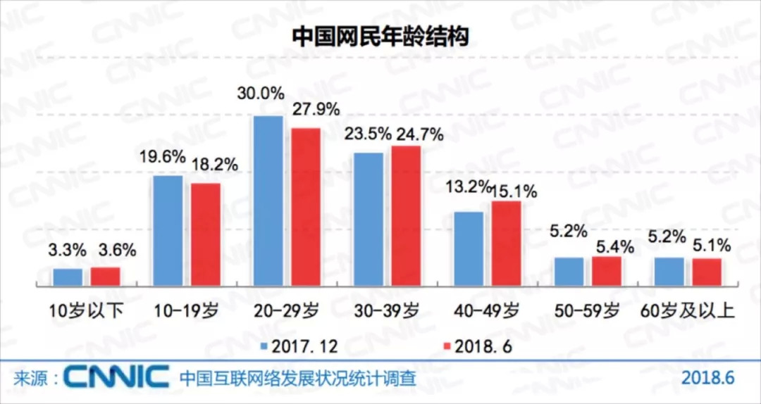 据CNNIC 2018年数据显示,中国网民中,29岁以下的群体占比近50%,同时,90后和00后的人口基数也已达3.3亿,超越80后的2.2亿,成为中国互联网中一族庞大且活跃的人群。