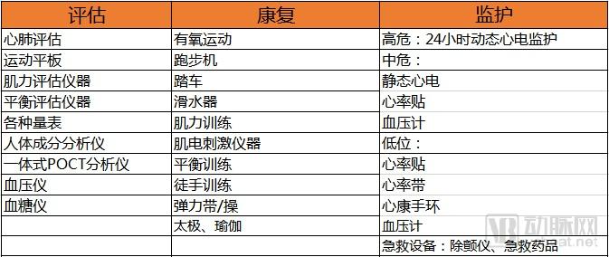 心脏康复中心会涉及到评估、康复、监护三类器械: